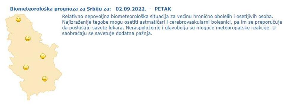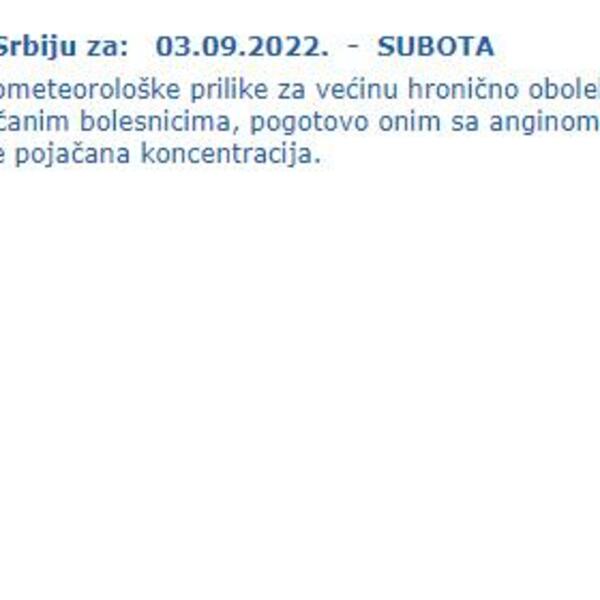Međutim, biometeorološka situacija neće biti baš povoljna za određenu grupu ljudi.