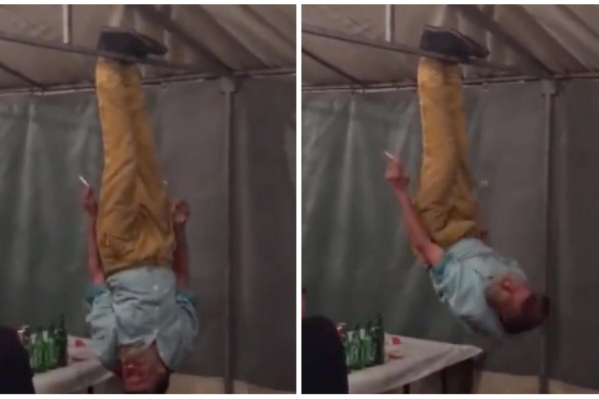 Na društvenoj mreži Twiter osvanuo je novi ludi video. Čovek je odlučio da svoj provod učini još zabavnijim. Zašto bi sedeo za stolom, kada može jednostavno da visi naglavačke. Izgleda da ga je alkohol dobro udario u glavu. Međutim i u vidno pijanom stanju čovek uspeva da se uz pomoć nogu i šipke održi u ovom položaju, neverovatan prizor.