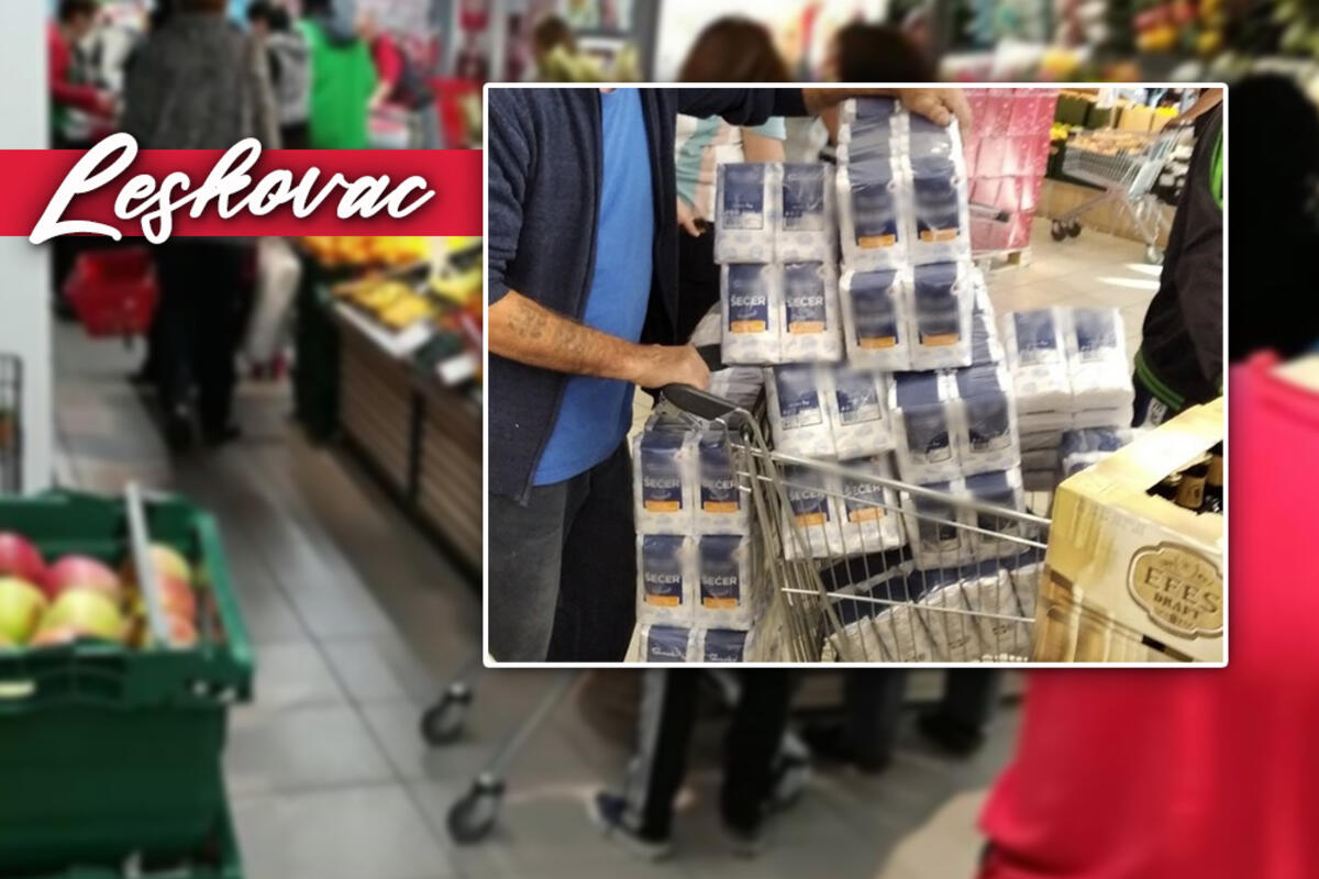 Kupci koji su se oko 8 sati zatekli jutros u jednom marketu u Leskovcu imali su sreće jer je stigao šećer, koga prodavci nisu ni stigli da stave na rafove već se grabio sa paleta ili kolica. Neko od navale nije mogao da pazari ni kilogram, a neki su, upućeniji, kupovali po 10 kilograma. Pet članova iz iste porodice jednako 50.