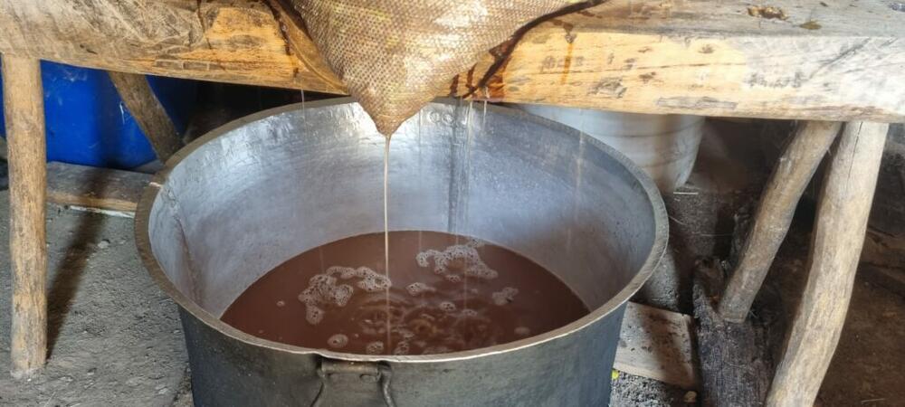 "Tučevina je izgnječeno voće koje pokupimo u burad i dobro je da ono tako prenoći a narednog jutra, što ranije počinje ceđenje. Za to koristimo tijesak, orlić i dve debele daske probušene da bi tijesak mogao da se privija po ručno iskopanim navojima. Između dve daske stavi se sitna torba napunjena tučevinom, odnosno izgnječeni voćem pa se privijajući orlić iscedi zadnja kap soka. Kad smo pri kraju ceđenja, Hajrija i ja naložimo vatru, stavimo kazan na metalno postolje koje zovemo sadžak. Kazan do vrha napunimo sokom i tada počinje varenje site. To traje pola dana i više i nije dobro da se prekida dok sita ne bude gotova", priča Murat.
