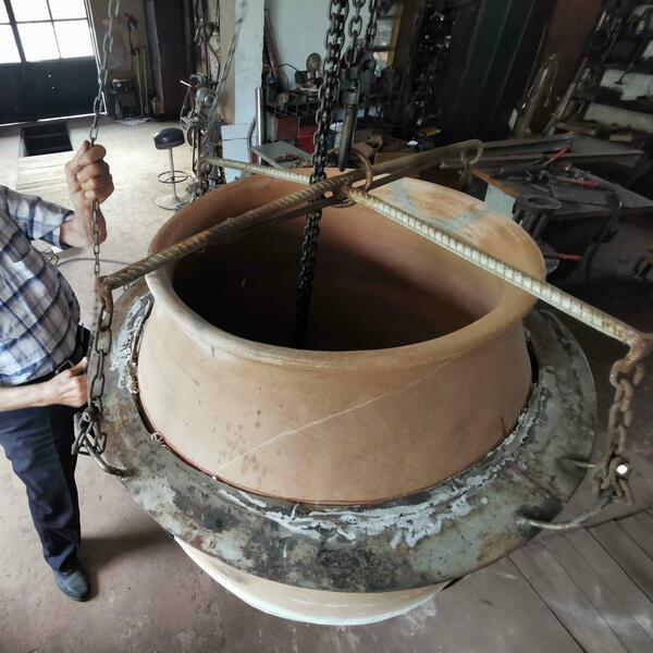 Njegov lonac ima grejač unutra, a oko njega bude zapaljeno ukupno 12 vatri. Težak je više od 200 kilograma, koja uvek ide uz njega, teži takođe oko 200 i ništa se tu ne može postaviti bez čekrka, a dobro druženje je tada uvek zagarantovano.