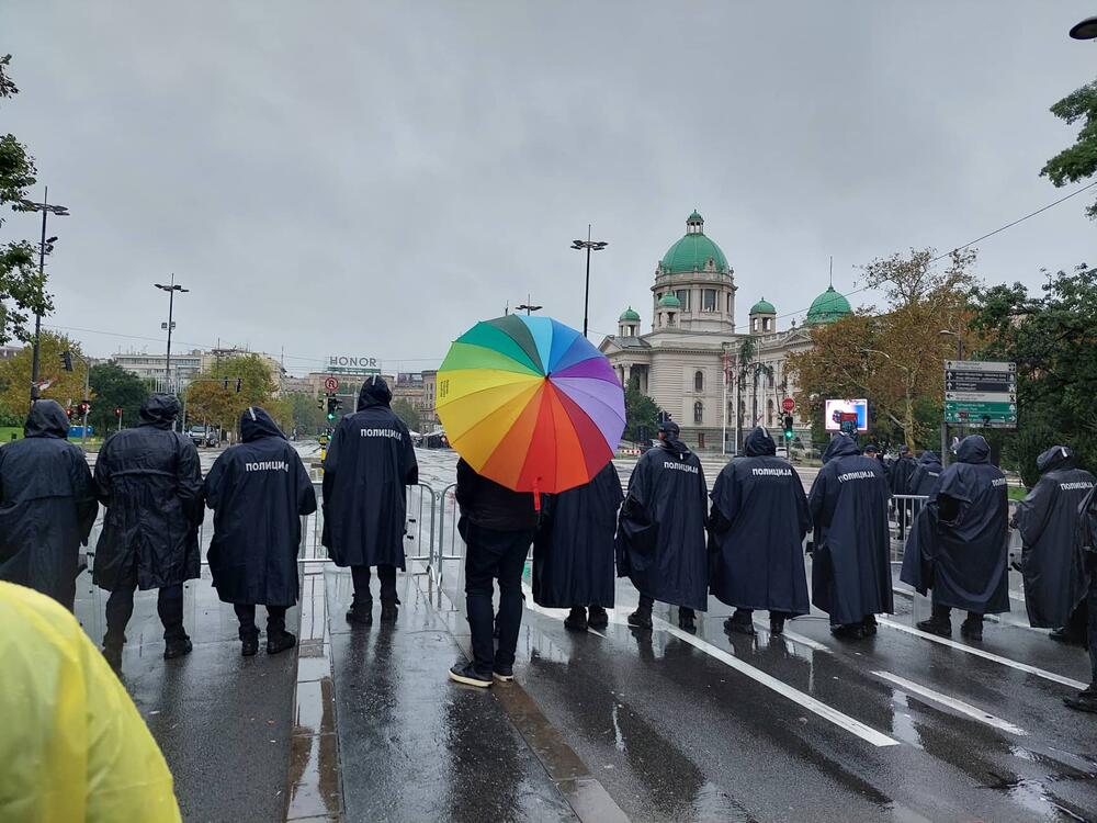 "Osećam se čudno, budući da nije onako kako smo planirali, ne liči na Evroprajd koji očekujemo, očekivali smo festival slobode, iako će to biti šareno ove godine, ostaje gorak ukus zabrane Upravnog suda i izjave Vlasti. Imam pomešana osećanja, mi smo pružili najbolje, ali neke stvari ne zavise od nas Vlada Srbije i ova kiša", rekao je koordinator za Espreso u centru Beograda, gde je veliki broj policije na ulicama.