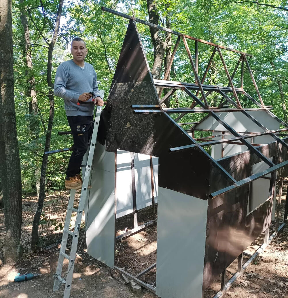 „Želja mi je bila već nekoliko godina unazad da bajku ‘Ivica i Marica’ ilustrujem tj. izgradim onako kako je ja vidim. To mi je omiljena bajka iz detinjstva, pa je najveći motiv za izgradnju bilo baš to. U izgradnji su učestvovali svi iz moje porodice, najviše otac Zoran koji mi je pomagao u zavarivanju metalne konstrukcije od koje je, u osnovi, izgrađena kućica od slatkiša. Komšija Dragan mi je pomagao u izradi krova koji smo napravili od OSB tabli i tegole. Nakon šest meseci posvećenog i napornog rada, napokon sam završio novi projekat i bajku dočarao na jedinstven način“, rekao je za RINU, Ivan Jakovljević sa Rudnika.