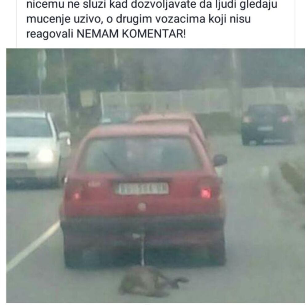 Vozač automobila beogradskih registarskih tablica vezao je psa za automobil i vukao po putu. Incident je uslikao vozač automobila koji je bio iza njega, a sve se dogodilo na putu kod Grocke.