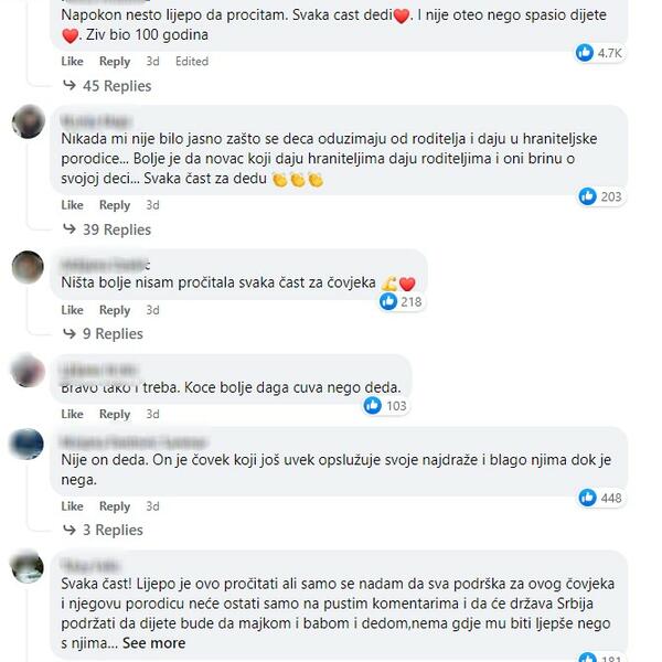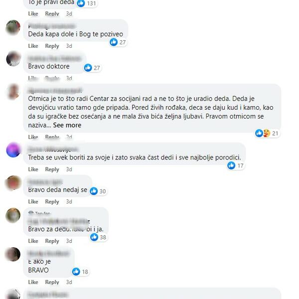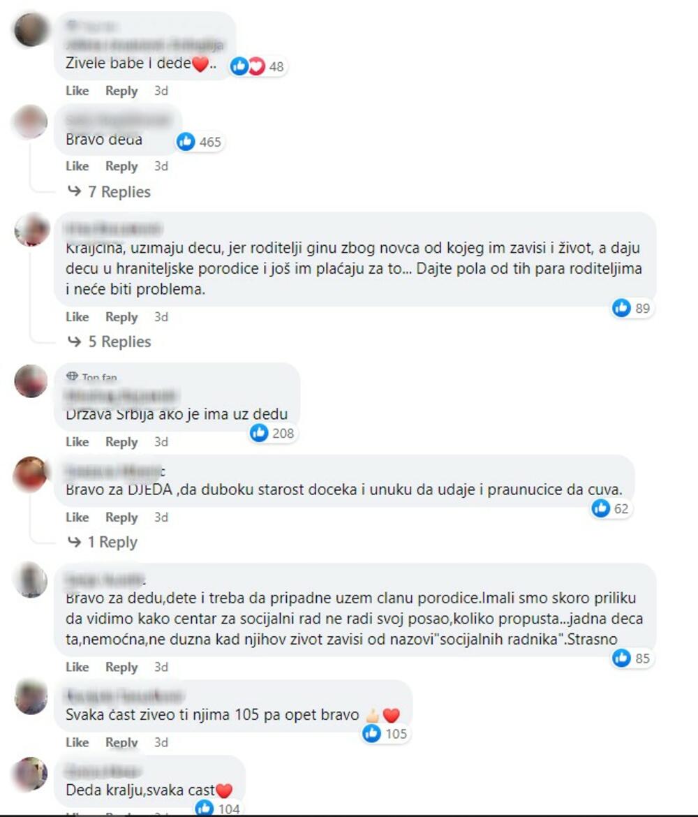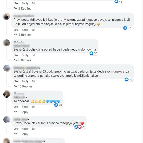 Gotovo na hiljade kometara su ljudi ostavljali podržavajući dedu