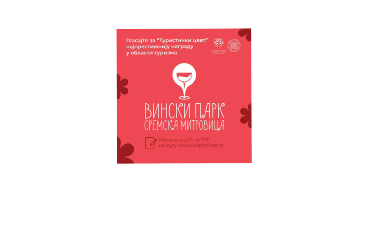 Da li ste znali da možete da glasate za najbolju turističku manifestaciju u Srbiji? “Vinski park”, jedna od najvećih regionalnih vinarskih i gastronomskih manifestacija iz Sremske Mitrovice konkuriše za najprestižniju turističku nagradu “Turistički cvet” koju dodeljuje Turistička organizacija Srbije. Glasanje je počelo 3. novembra i trajaće do 17. novembra. Svako ko smatra da je Vinski park u Sremskoj Mitrovici najbolja turistička manifestacija u Srbiji ove godine, može da glasa putem sajta na sledećem linku https://turistickicvet.rs/glasanje.html.