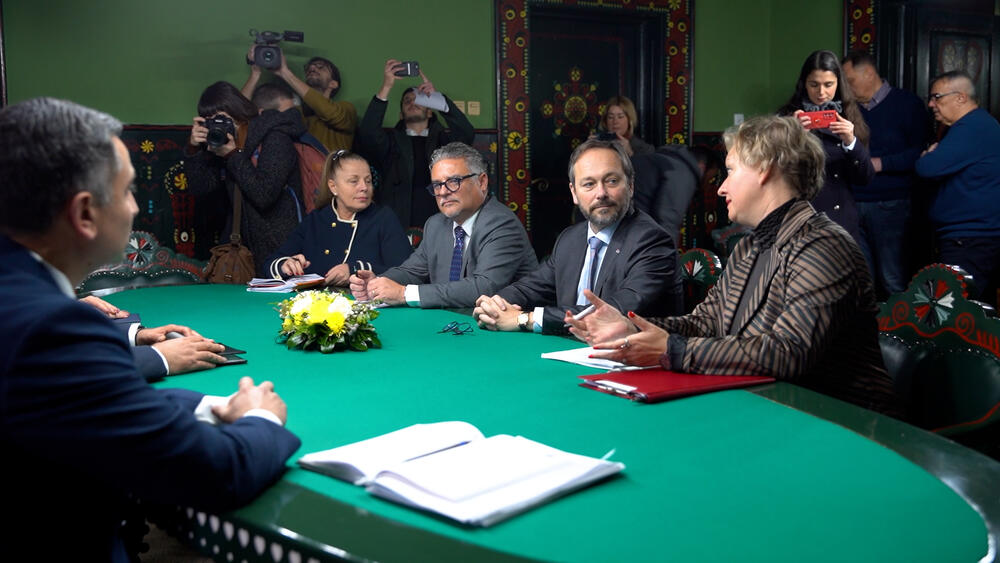 Ambasador Evropske unije u Republici Srbiji Emanuel Žiofre je na lep gest gradonačelnika Bakića, uzvratio podjednako lepim gestom, pa je ovom prilikom takođe uručio poklon i istakao da EU želi da radi više sa Srbijom i da želi da pruži podršku u borbi protiv trgovine ljudima.