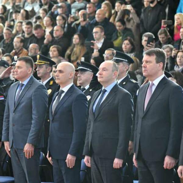 Ministar unutrašnjih poslova Republike Srbije Bratislav Gašić, čestitao je završetak školovanja policajcima i rekao da je ponosan dok ih gleda kako stoje u stroju kao jedan