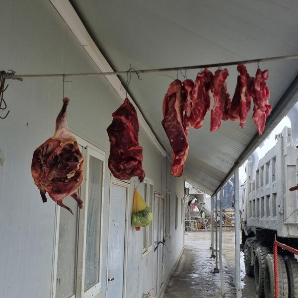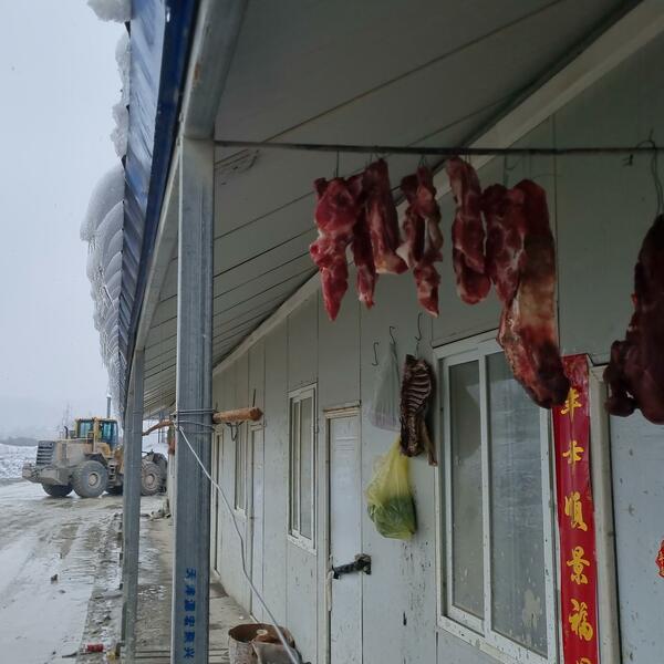 Da su radnici iz Kine poprimili i neke srpske običaje, najbolje svedoči slika koju smo zatekli ispred ulaznih vrata u kampu, gde se okačene na januarskom mrazu suše jagnjece kolenice i butkice, ali i piletina.