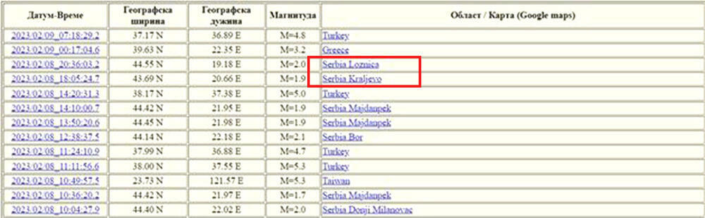 Međutim, iste večeri zemljotres je zabeležen prvo u Kraljevu u 18.05 časova, a jačina mu je bila 1,9 stepeni po Rihteru.