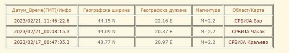 Pre toga, tlo u Boru se zatreslo u 10.24 sati, a zemljotres je bio jačine 1,9. Takođe, potres iste jačine zabeležen je i u Majdanpeku, danas u 11.27 sati.