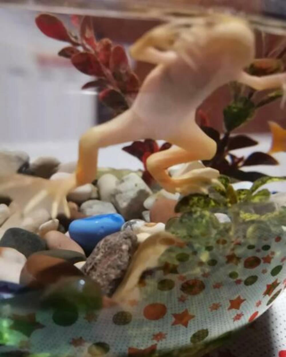 - Naš Milentije je veoma čudan, ko god ga vidi postavi nam hiljadu pitanja i za ovih nekoliko godina pokupio je mnogo simpatija. Slučajno smo ga kupili u pet šopu pre šest godina jer je i nama privukao pažnju njegovim čudnim izgledom. On je jedinstven, bar ovde kod nas niko ništa slično nije video. Nema pigment kao što inače imaju žabe, zbog toga su mu oči još više došle do izražaja“, rekao je za RINU Dragan Jovanović.