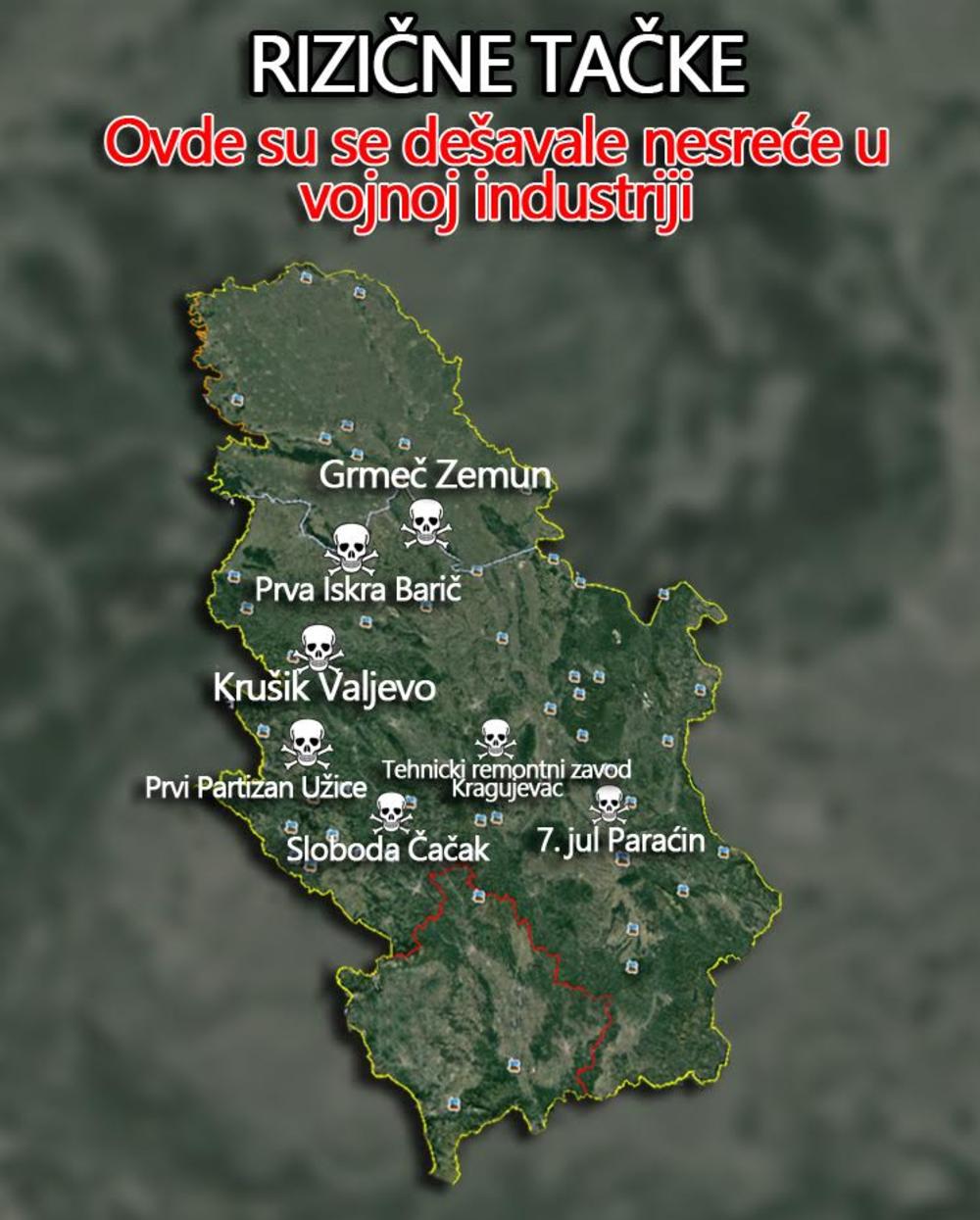 Ministar Đorđević danas je izjavio da je zabrinut da bi mogla da dođe do još eksplozija u Kragujevcu. No, ovaj grad godinama nije bio jedina rizična zona u Srbiji.