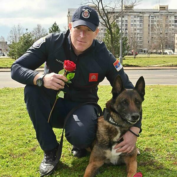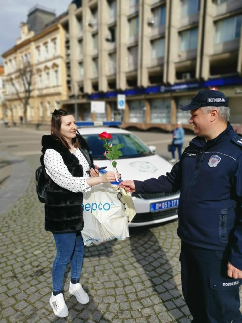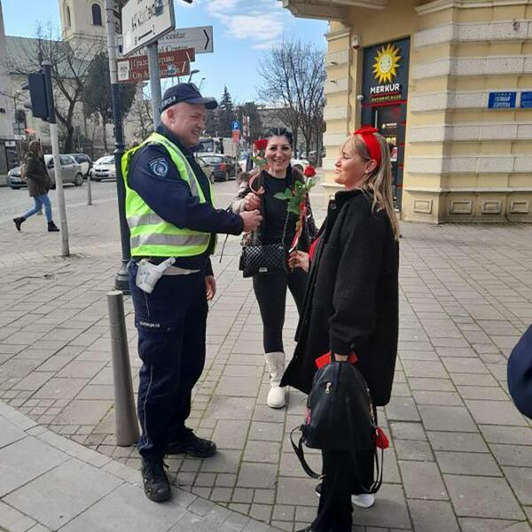 U Šapcu su policajci damama deli ruže, a praznik im je čestitao i veoma poznat pas Zigi, koji je spasavao preživele u ruševinama u Turskoj, nakon razornog zemljotresa.
