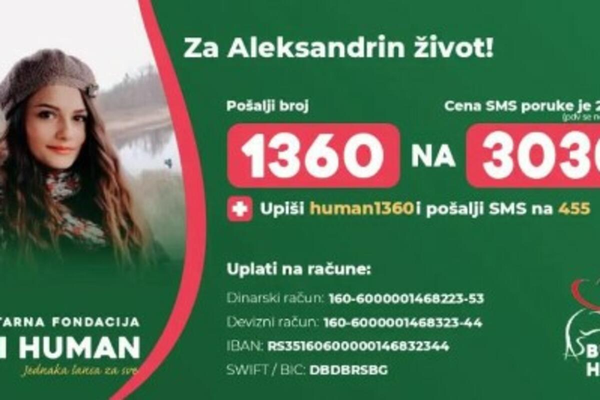 Svi oni koji mogu i žele da pomognu Aleksandri to mogu učiniti preko Fondacije "Budi human", slanjem SMS poruke 1360 na broj 3030, cena poruke je 200 dinara ili uplatama:
