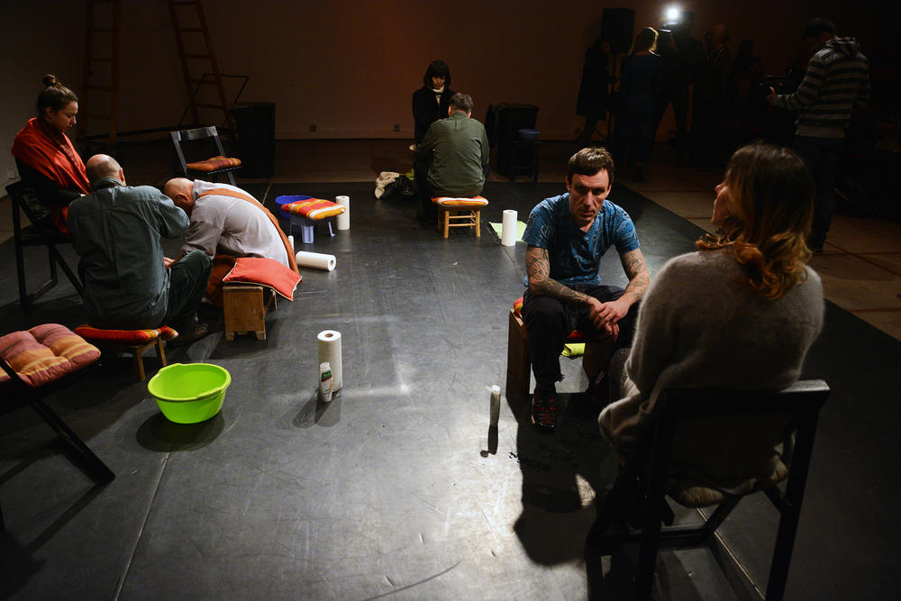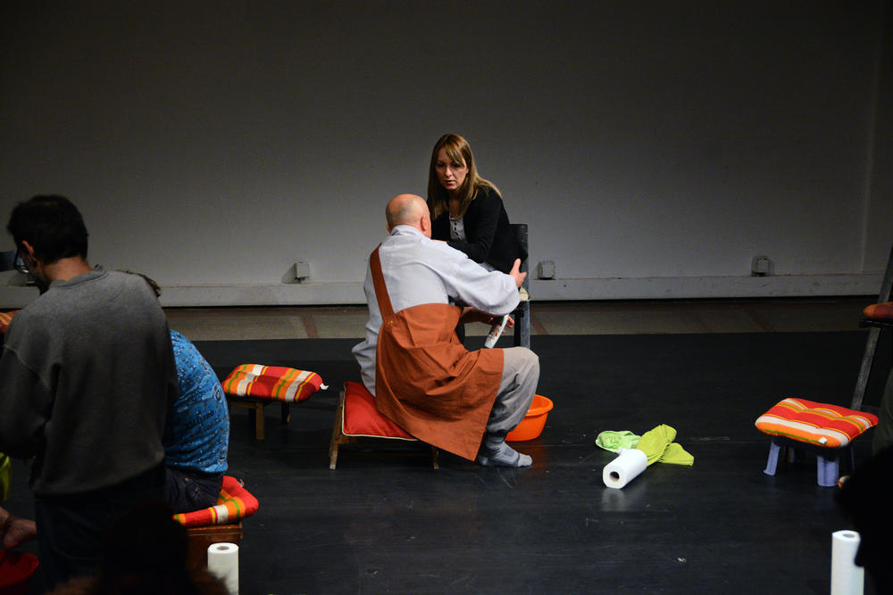 U centru tri muškarca, koji kleče i peru im noge. Na trenutak sam bila u blagom šoku - prvo, nikada nisam videla ovakav prizor, a drugo - svima je ovo bilo nešto normalno, kao da se dešava svakog dana.