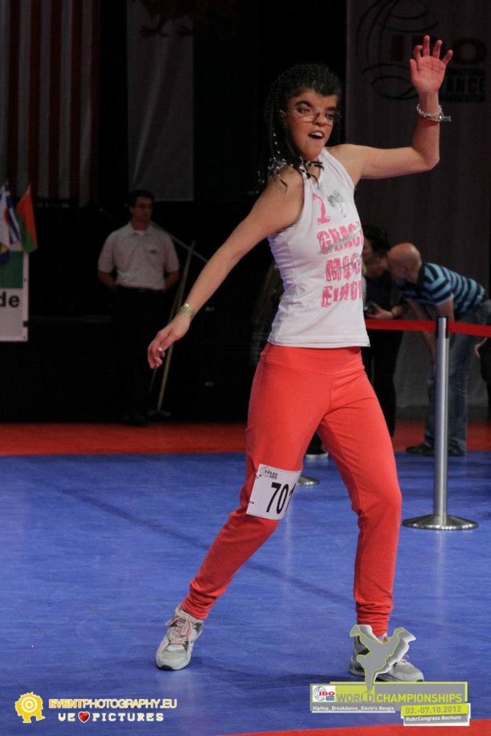 - Marina je 2012.postala vicešampionka sveta u hip hopu za mlade sa invaliditetom u Bohumu. Naredne 4 god.takmičila se kao koreograf i igrač svoje grupe BLUE SHELL i osvajale su jednom drugo mesto u Evropi, jednom 4.mesto na svetu i 3 puta treće mesto na svetu.