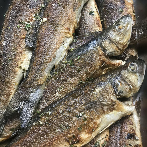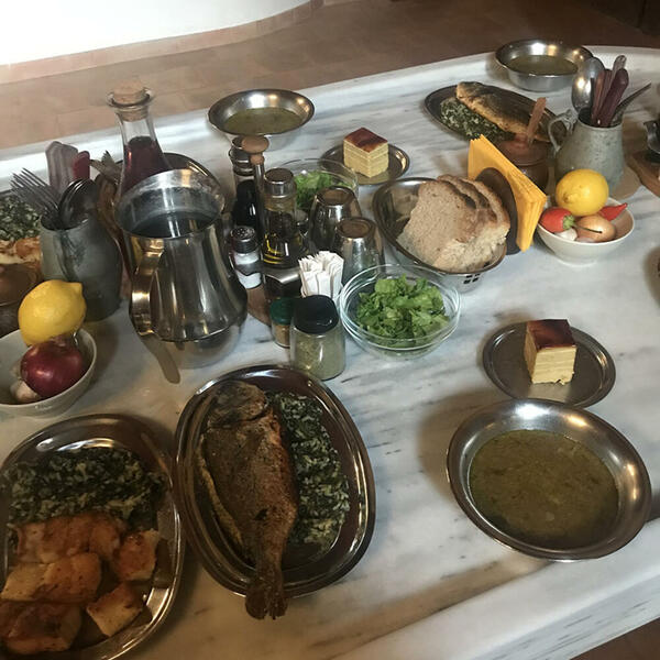 - Iznosimo hleb, salatu, vodu i vino. Riba obično bude orada ili brancin, a ponekad i kuvani bakalar. Oradu i brancin spremamo na roštilju, tu ih i solimo i premazujemo grančicama ruzmarina koje umačemo u domaće maslinovo ulje. Uz ribu dajemo marinadu od belog luka, limuna i maslinovog ulja. Veoma lepa marinada je grčka ladolemono, čije su dve trećine maslinovo ulje, a jedna limun - daje recept domaćicama glavni kuvar Hilandara.