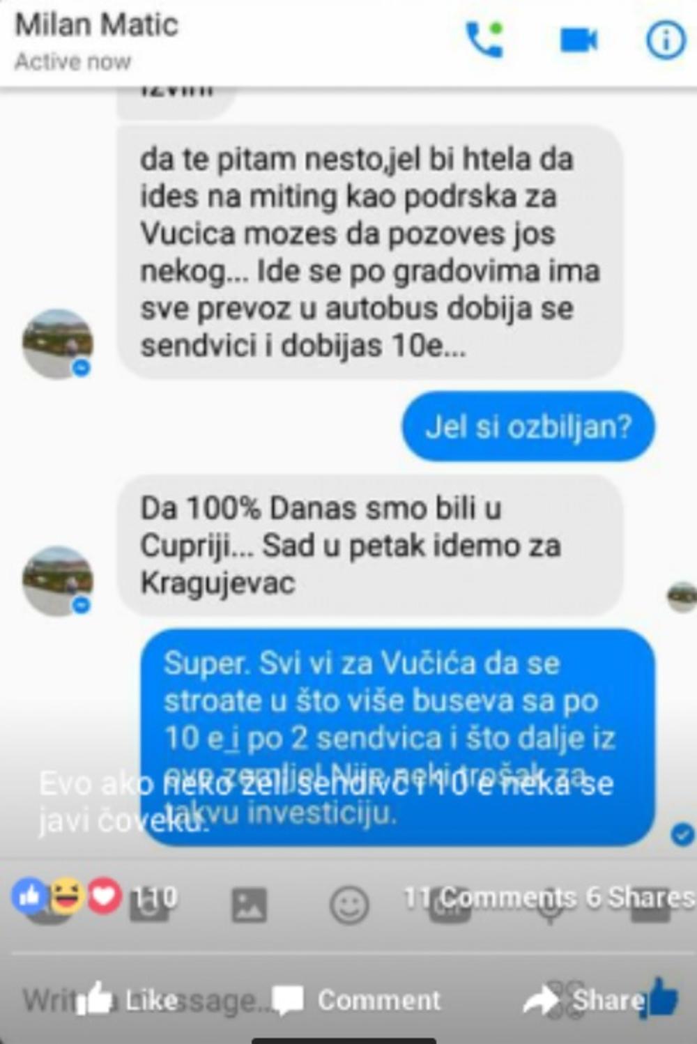 Nudi vam se sendvič i 10 evra, a zauzvrat je potrebno da odete na miting i podržite Vučića.
