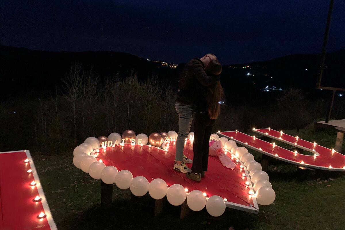 - Milica nije znala apsolutno ništa do poslednjeg trenutka, čak nije ni slutila šta joj spremamo. Oboje su bili oduševljeni kako smo sve odradili, a mesto im se posebno svidelo, svi smo bili uzbuđeni kako će reagovati da li će sve ići po planu, ali hvala Bogu sve je ispalo savršeno. Sudbonosno ‘da’ naša mlada izgovorila je na ‘platformi ljubavi’ koja je savršeno mesto za ovakve trenutke. , kaže za RINU Đorđe Bukvić, jedan od Mladenovih prijatelja koji je učestvovao u organizaciji veridbe.