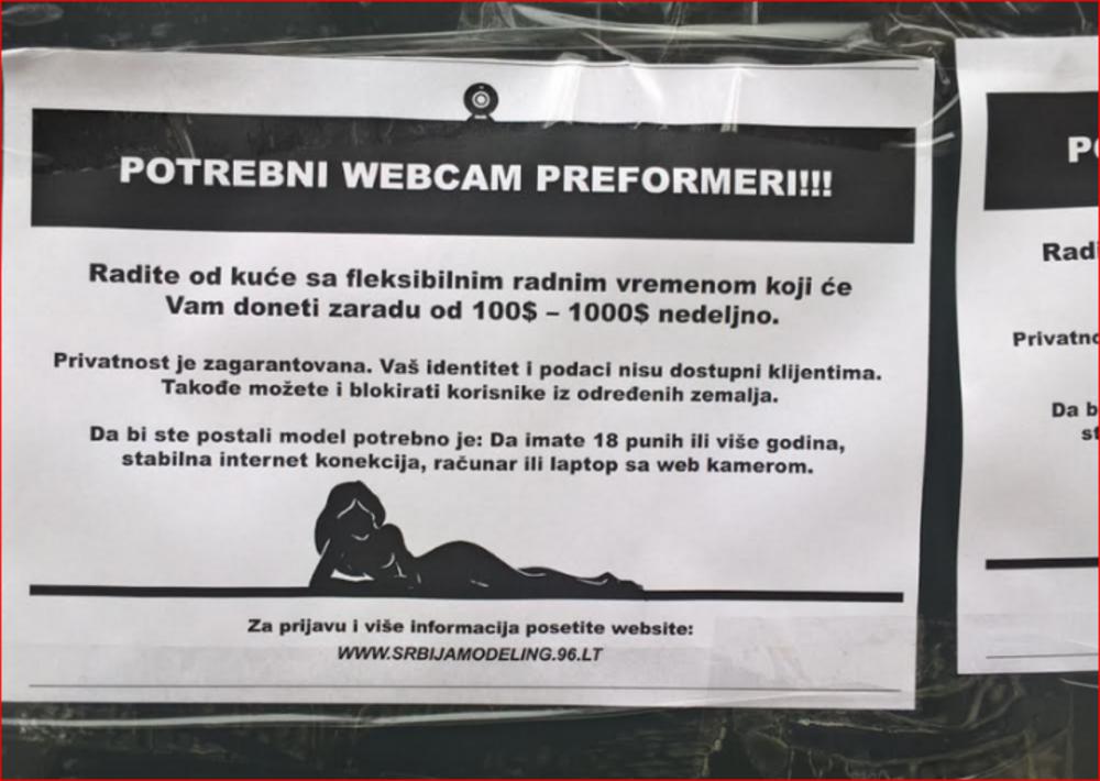 U naselju Dubočica na tabli, pored čitulja, osvanuo je i oglas kojem se mlade i lepe devojke pozivaju na – internet prostituciju.