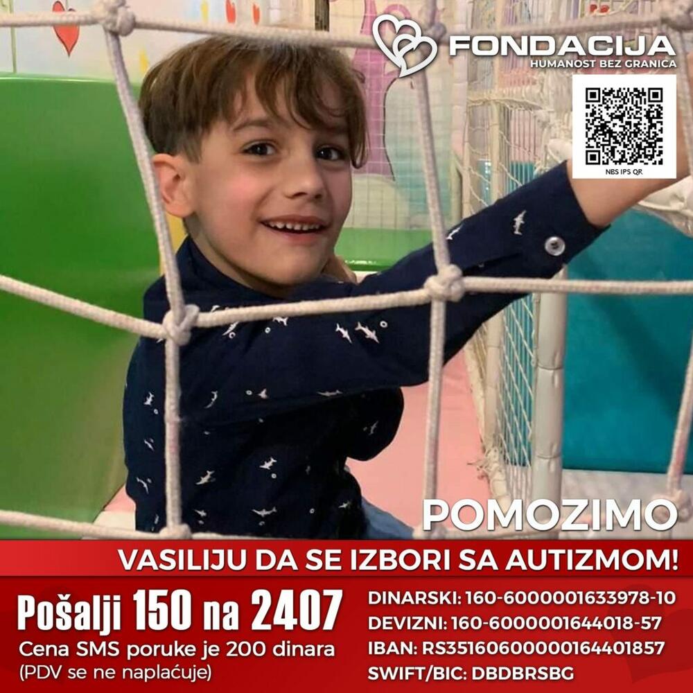 Ovim putem pozivamo sve ljude dobre volje da pomognu Vasiliju da se izbori sa autizmom, tako što će preko Fondacije humanost bez granica, poslati SMS sa brojem 150 na 2407.
