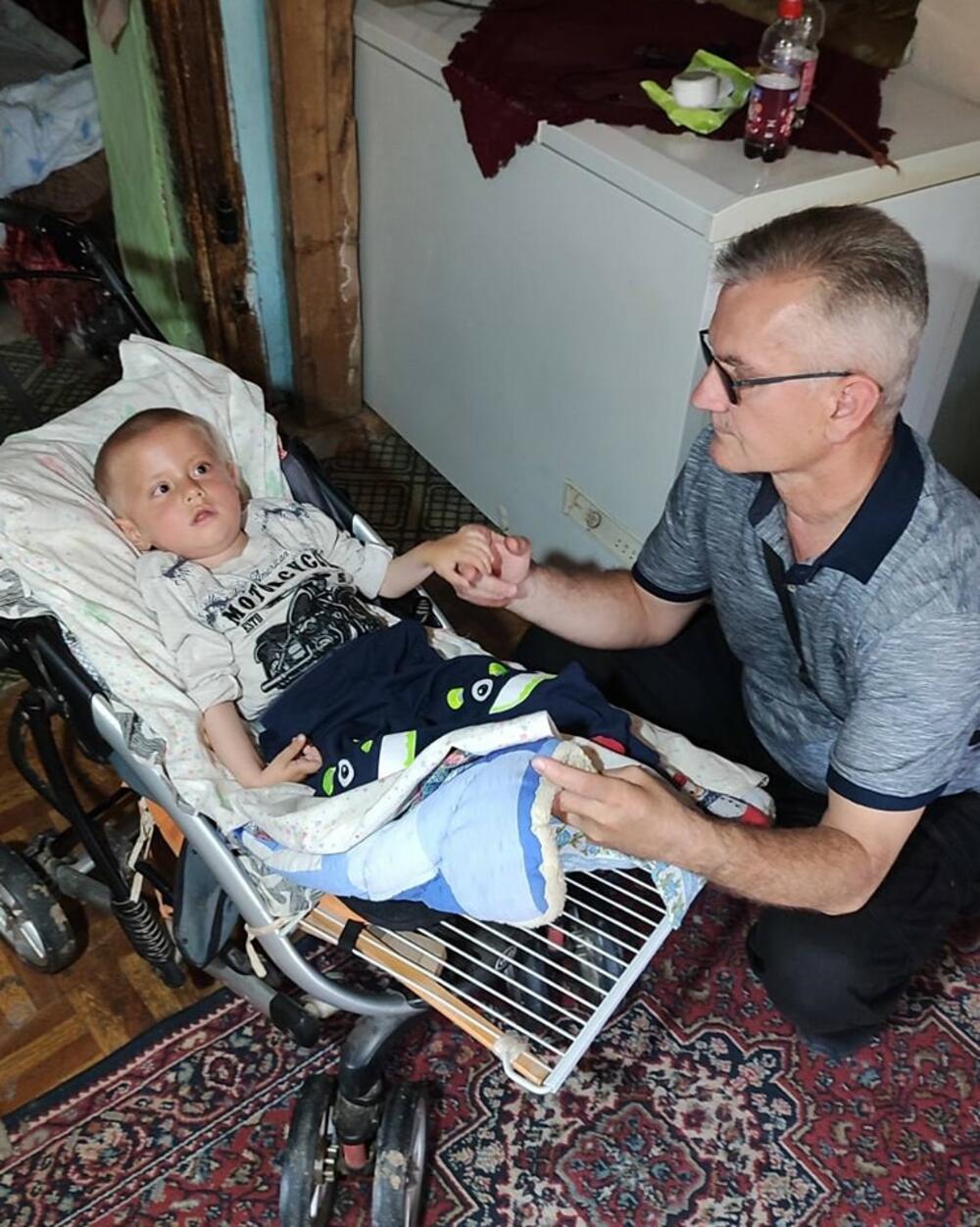 Ivan ima mnogo odela i zaista mu nije potrebno, ali nema neurološka kolica za njega već samo ova koja su pravljena od običnih dečijih a platforma za noge od žice za frižider koja je napravila njegova baka Huska Iren.
