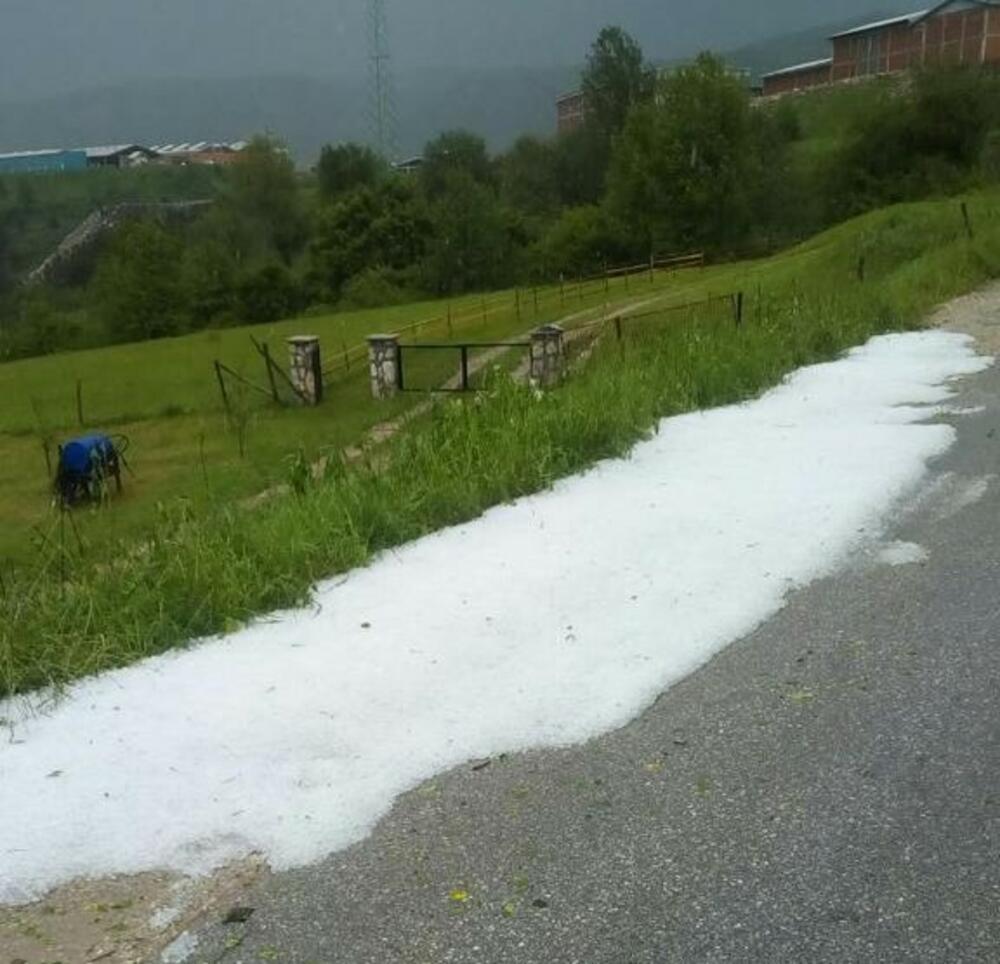 Jako nevreme praćeno krupnim gradom pogodilo je teritoriju opštine Nova Varoš. Za samo nekoliko minuta čitavo područje potpuno se zabelelo usred juna, a velika količina leda zadržala se i na magistralnom putu.