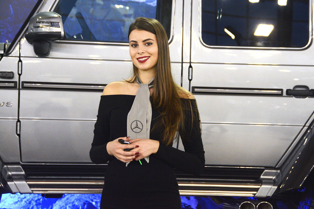 Mercedes se odlučio sa crne elegante haljine u kojima su njihove hostese izgledale prelepo, a njihov osmeh privukao je veliki broj potencijalnih kupaca.