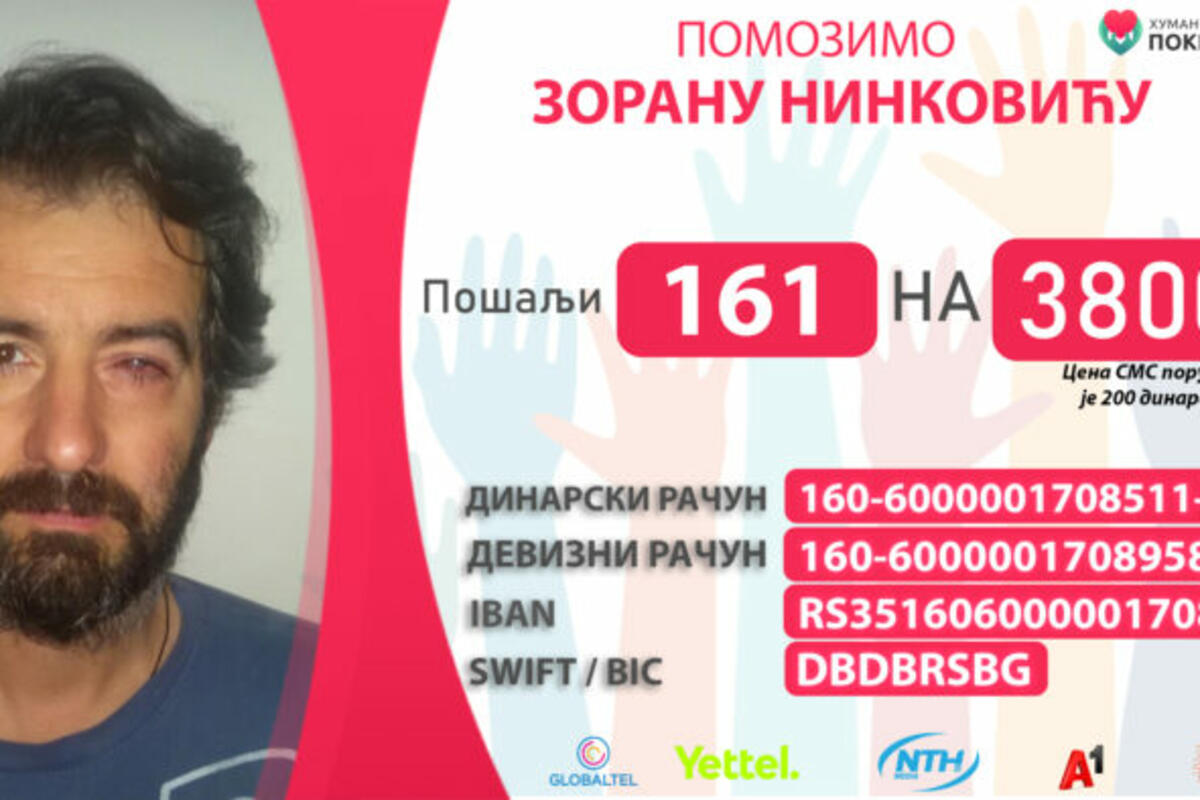 Zoran Ninković rođen 22.12.1975.godine u Valjevu. Sve je počelo 2016. god kada je izgubio vid usled ablacije retine. U martu 2022. ponovo se javlja ablacija i dijagnostikovana je simpatička oftalmija i panuveitis i time Zoran biva životno ugrožen.