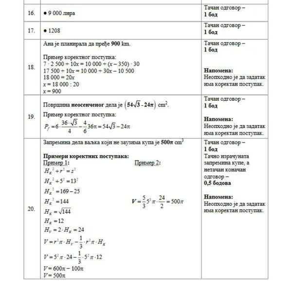 U nastavku možete pogledati rešenja zadataka iz matematike koju su danas polagali osmaci.