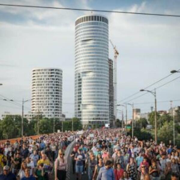 Nakon govora ispred parlamenta građani su krenuli Ulicom kneza Miloša do Mostara, a odatle Bulevarom kneza Aleksandra Karađorđevića došli do zgrade televizije Pink. Povod za šetnju do te TV stanice je najava njenog vlasnika Željka Mitrovića da su počele pripreme za novu sezonu rijaliti “Zadruga”, čije ukidanje je zatraženo sa protesta.