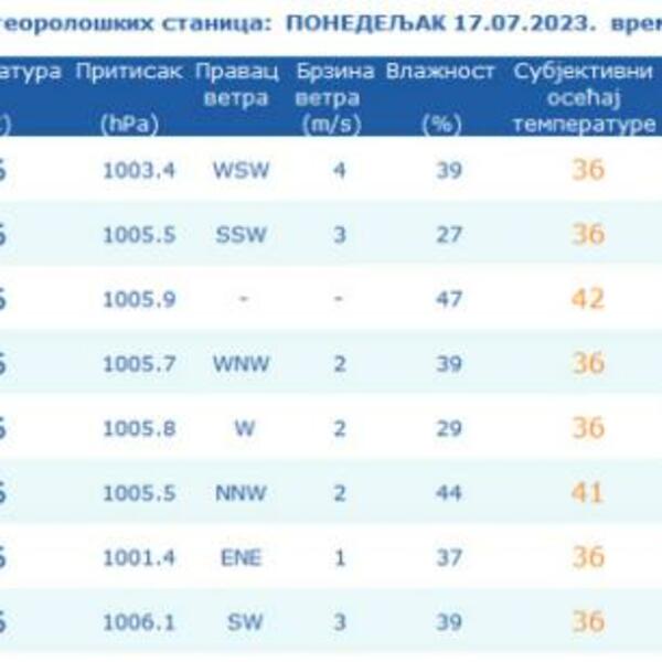 U Kragujevcu je izmereno takođe 36 stepeni, a osećaj je kao da je 40. U Negotinu 37, a subjektivni osećaj je da je 41.