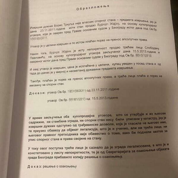U galeriji ispod možete pogledati dokumenta koja potvrđuju kupovinu nekretnine i da obaveštenje javnog izvršitelja koje je poslao Pavlovićima.