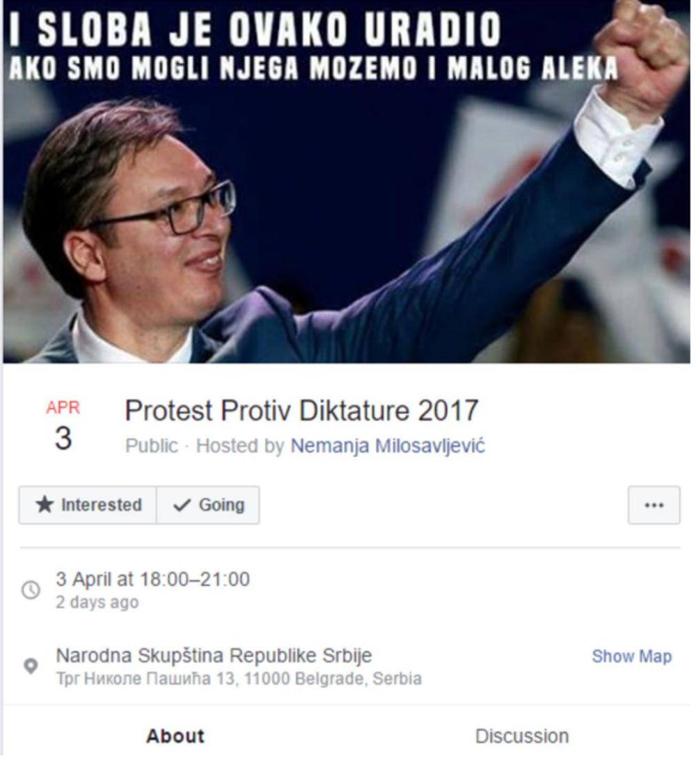 Tešanović nije ostao neprimećen od strane Nemanje Milosavljevića, mladića koji je organizovao proteste na Fejsbuk stranici, "Protest protiv diktature" od koje je sve i počelo.