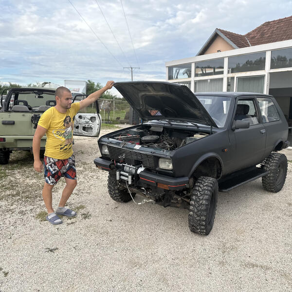 - Kupio sam Suzuki Vitaru i celo postolje je njeno, od šasije, menjača i motora, dok je spolja kabina čuvenog "jugiše". Kombinacijom ta dva auta dobio sam savim neobičan džip što mi je i bila ideja. Spolja izgleda kao jugo, simbol bivše juge, dok je mehanizam čuvenog japanca koji radi savršeno - kazao je ovaj mladi konstruktor za RINU.