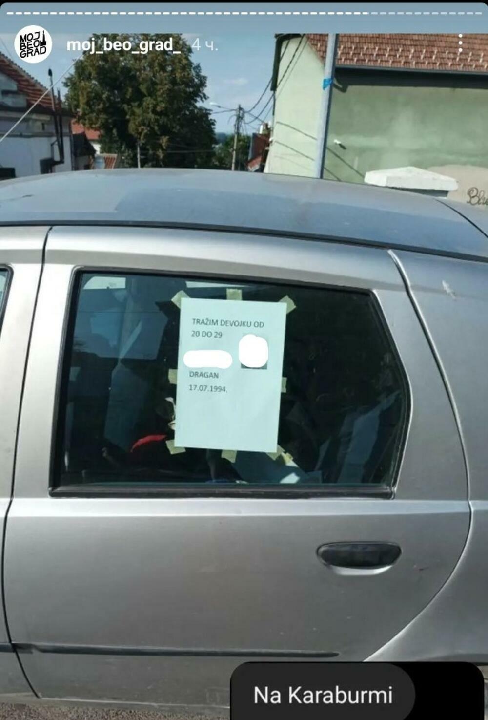 Oglas jednog Dragana koji traži devojku osvanuo je na društvenim mrežama. Ovaj mladić je oglas okačio ni manje ni više nego na autu i to sa svojom fotografijom.