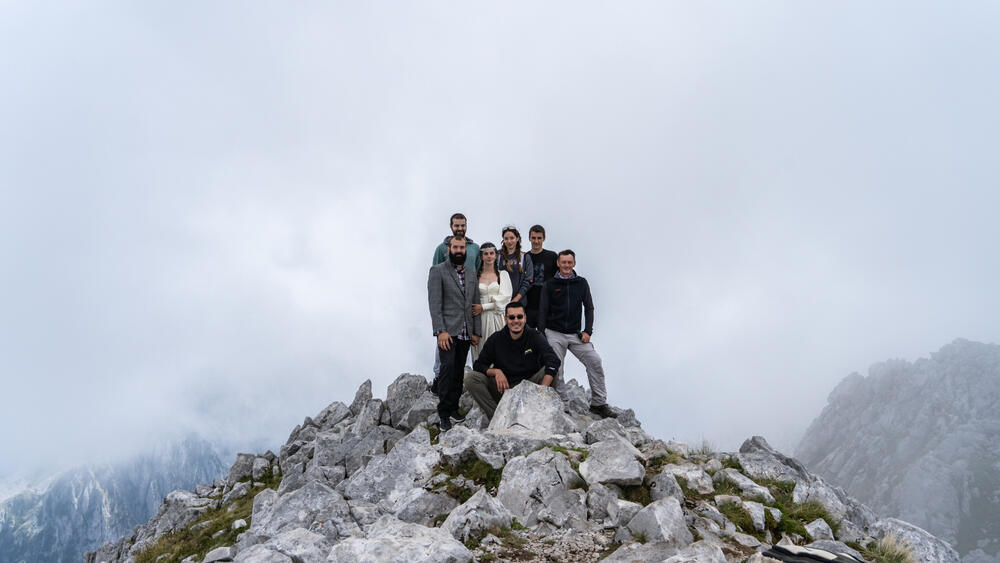 - Prvo smo hteli da odemo na Alpe, ali kako smo čuli da tamo veoma često dolazi do smrtnih ishoda, onda smo se odlučili za malo blažu i bližu verziju. Nas sedmoro otišlo je na Prokletije, odnosno Trojanske planine, peli smo smo se duže od tri sata kako bi stigli na Severni vrh. Tada smo se presvukli. Ja sam obukao sako, Joca venčanicu a moj drug Luka Ivanović iz Pančeva napravio je ceo film u trajanju od 3.17 minuta koji smo potom pustili na svadbi umesto plesa, rekao je David.