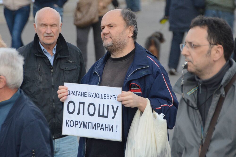 - Dragane Bujoševiću, ološu korumpirtani, piše na jednom od mnogobrojnih plakata.