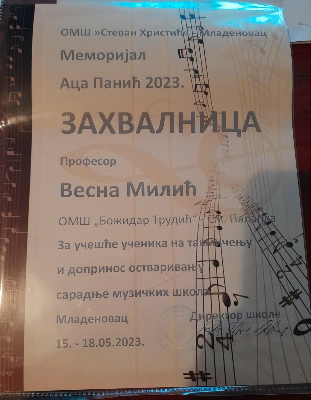"Na takmičenju "Zemun international competition" učenica Vera Dosić je osvojila drugu nagradu, učenica Dunja Elez je na brojnim takmičenjima osvajala drugu nagradu, na "Memorijalu Kosta Manojlović" učenica Hana Golubović je osvojila prvu nagradu. Na "Piko piano talentu" Vera Dosić je osvojila drugu nagradu, kao i ostala brojna takmičenja i nagrade...", priča Vesna.