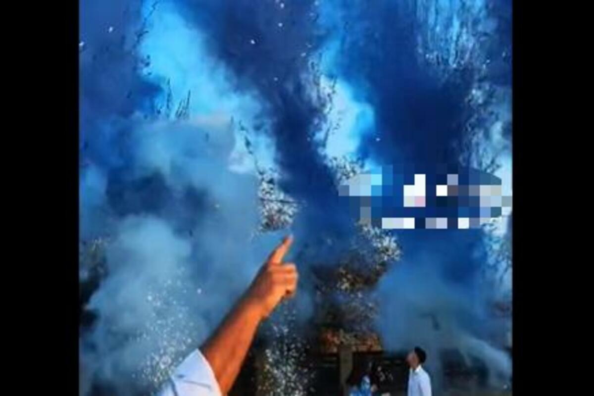 Nakon što su aktivirali "eksploziv" u nebo se rasula plava boja, plavi vatromet, prskalice, konfete, a reakcija budućeg oca na taj prizor shvativši da će za nekoliko meseci dobiti sina pokrenula je lavinu komentara.