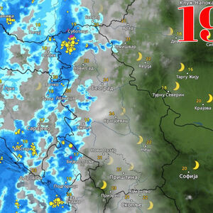 - U toku večeri oblačno, toplo i u većem delu suvo, a kiša će se sa severa, zapada i jugozapada Srbije sporo premeštati prema centralnim krajevima zemlje uz postepeno slabljenje vetra. Na jugozapadu Srbije očekuju se i lokalni pljuskovi s grmljavinom - navodi se u RHMZ najavi.