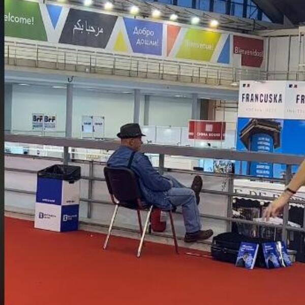 Ona je istakla da je ovaj pesnik došao sa polomljenim koferom i svojim knjigama, ali mu je ubrzo rečeno da mora napustiti Sajam jer nije imao svoj štand.