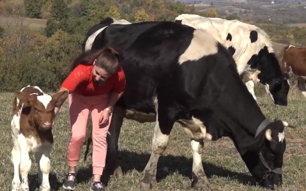 BIKA BOŠKA SE PLAŠE SVI, A ON SAMO JEDE IZ NJENE RUKE: Saška (24) brine o 20 grla KRUPNE STOKE kod Bore! (VIDEO)