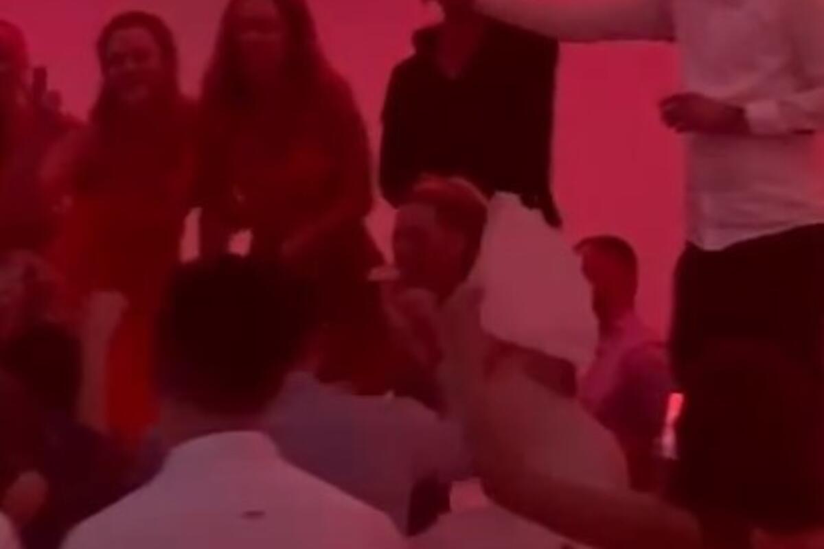 Ono što je izazvalo svojevrstan gnev kod velikog broja ljudi jeste ponašanje mlade koja se sa svojim drugaricama popela na sto, a onda veselila i igrala, a u jednom momentu uzela mikrofon i zapevala, pa muža, koji se u jednom momentu, takođe, našao na stolu, udarala po zadnjici sa sve cigaretom u ruci.