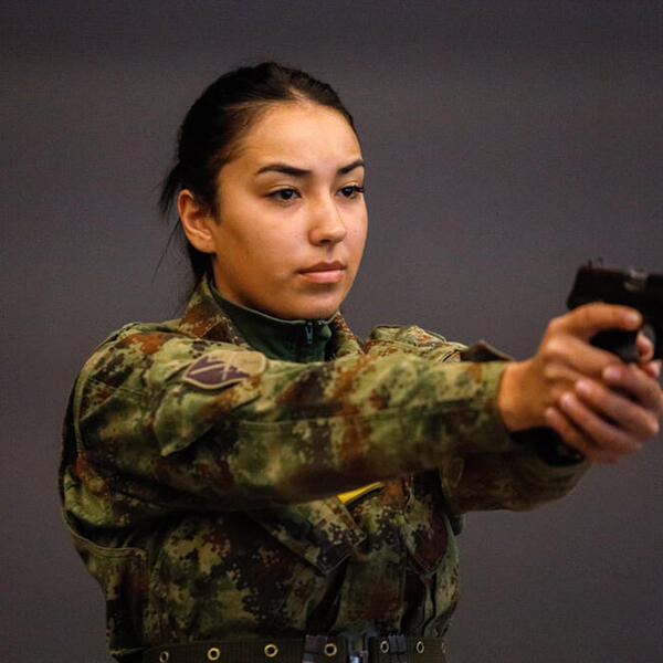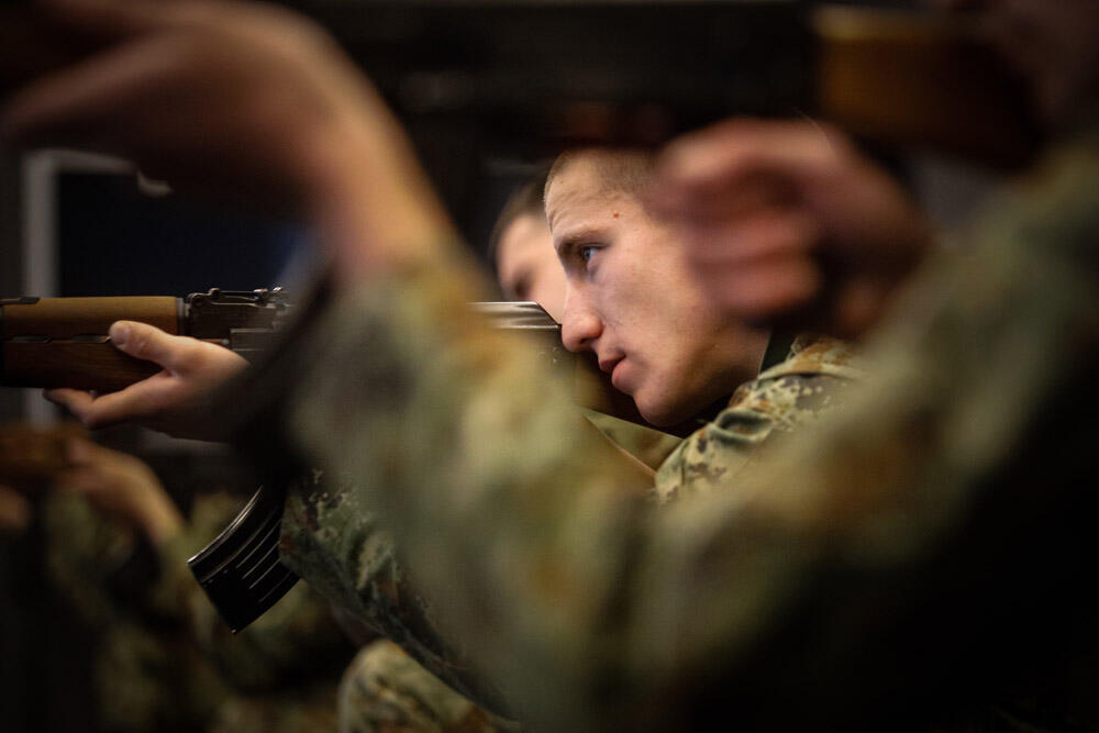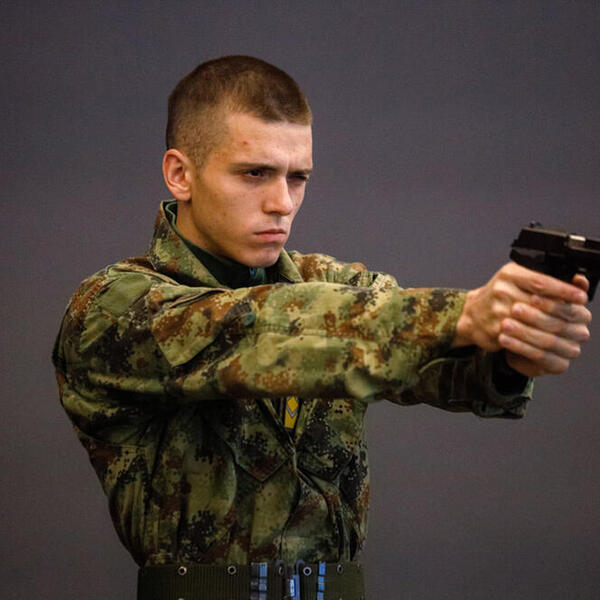 Tu su kadeti četvrte godine pešadije i među njima je samo jedna kadetkinja. Nišane, a u streljani tišina, koncentracija maksimalna, dah zastaje...