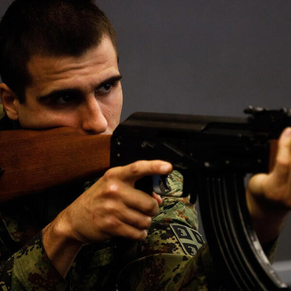 - Paljba! - reče potpukovnik Jokić i začuše se pucnji. Pogodak u metu. Svi odlični. Potpukovnik ponovi gađanje, pa onda opet na odsečne komande... Gađanje, pa analiza da provere kakvi su rezultati. I tako nekoliko puta. Potpukovnik Jokić kaže za Kurir da kadeti na studijskom programu Kopnena vojska sve četiri godine izučavaju naoružanje u okviru više predmeta.