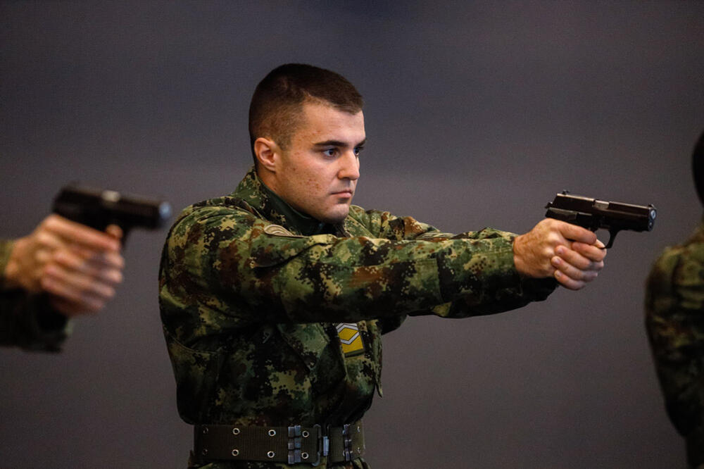 - Nastava iz naoružanja izvodi se u kabinetima, na poligonima, u vazdušnoj streljani, pištoljskoj streljani i na strelištima Vojske Srbije. Ovo je simulacioni trenažer za gađanje puškama i pištoljima - pištoljem domaće proizvodnje "CZ 99", "glokom 17" strane proizvodnje, kao i automatskom puškom M70. Ovaj simulacioni trenažer je jedinstveni na teritoriji Srbije, pa i šire. Počeli smo sa nabavkom 2018, a kada smo videli sve prednosti, odlučili smo se za proširenje, pa tako sada imamo tri platna za gađanje, gde istovremeno može da gađa 15 kadeta - objašnjava potpukovnik Jokić: