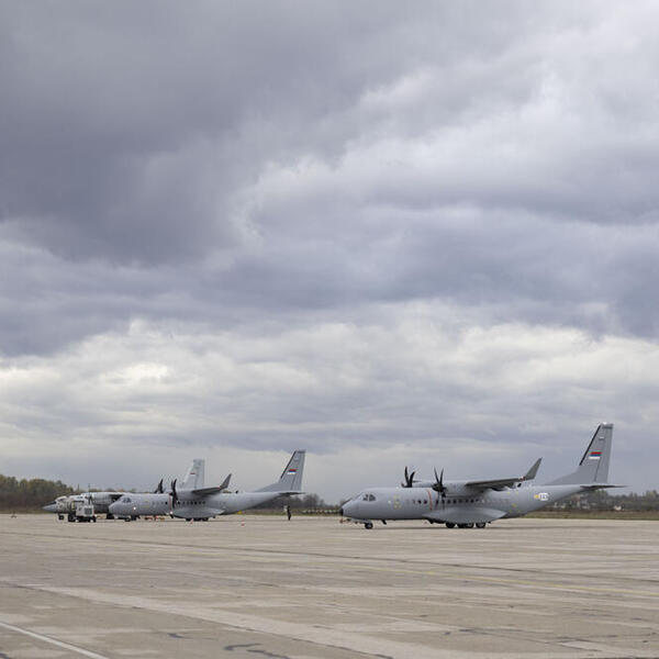 Vojni aerodrom "Pukovnik-pilot Milenko Pavlović" u Batajnici. Kišovito i oblačno, a mi se spremamo za let novim modernim transportnim erbasovim avionom CASA C-295 Vojske Srbije.