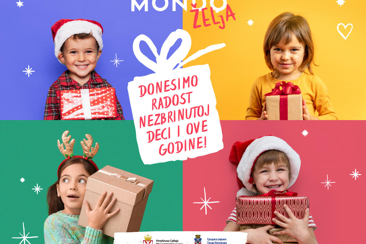 Ove godine, humanitarnu akciju "MONDO ŽELJA" organizujemo u saradnji sa dečjim ustanovama socijalne zaštite iz cele Srbije, uz snažnu podršku Ministarstva za rad, zapošljavanje, boračka i socijalna pitanja i Sekretarijata za socijalnu zaštitu grada Beograda. Snaga ove akcije leži u zajedničkom cilju, a to je da svako dete ima pravo na prazničnu radost i ispunjenje svoje novogodišnje želje.